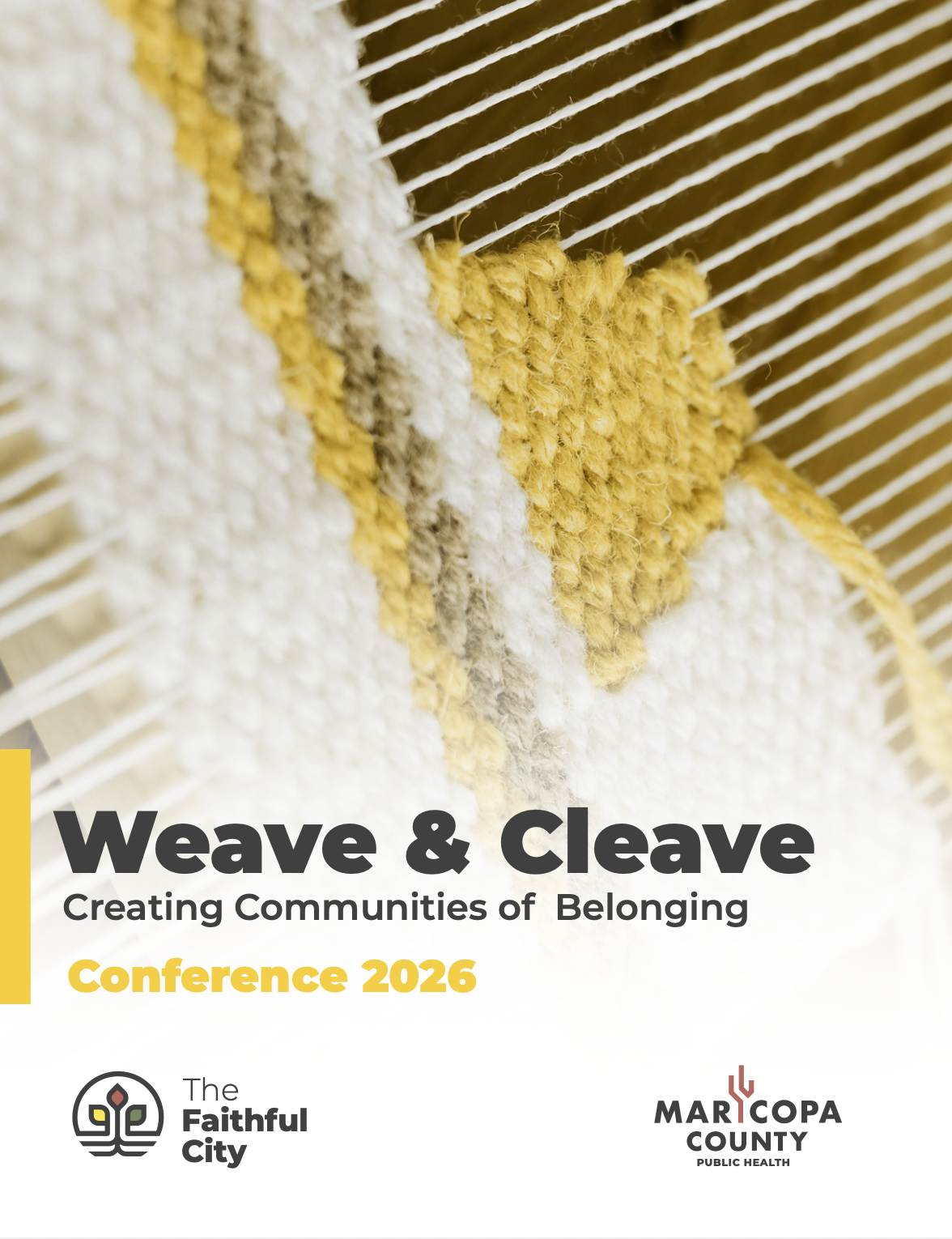 The Faithful City and Maricopa County Department of Public Health cordially invite you all to our 4th Weave and Cleave Conference 2026, pursuing unity, diversity, unconditional love, renewed identity, and trauma-transformed co-journeyers’ communities. The program includes local and national keynote speakers, breakout sessions with panel discussions, and various exhibitors to share our love and passion for this community movement.Mark you calendar! Our annual conference is our most loved and anticipated gathering every year.